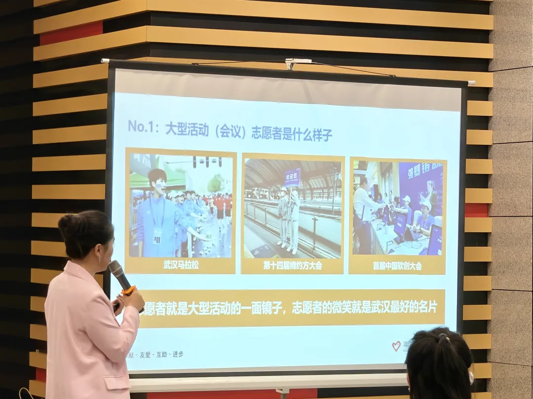 在培训现场,志愿者培训讲师表达了对志愿者们的殷切期望,希望志愿者们从根本上重视此次活动,将自身作为展示武汉的名片,讲好武汉故事,讲好中国故事,协助健博会的顺利开展,讲解了赛会志愿服务的价值体现、赛会志愿者的服务核心,对志愿者的服装、姿势、行进规范等,随后志愿者进行宣誓!